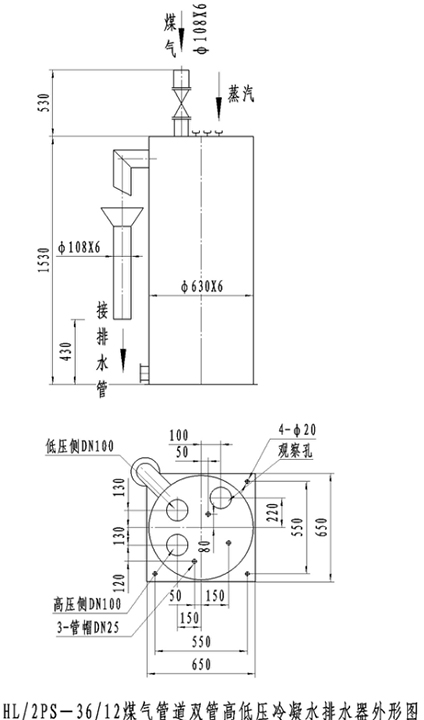 3、插入敝開(kāi)室的蒸汽管視南北地區(qū)的氣候條件決定是否需要接上外部蒸汽管,南方地區(qū)不接蒸汽管時(shí)需用管帽蓋上。