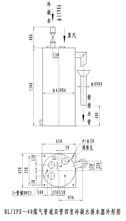 HL/2PS-40型煤氣管道雙管四室冷凝水排水器