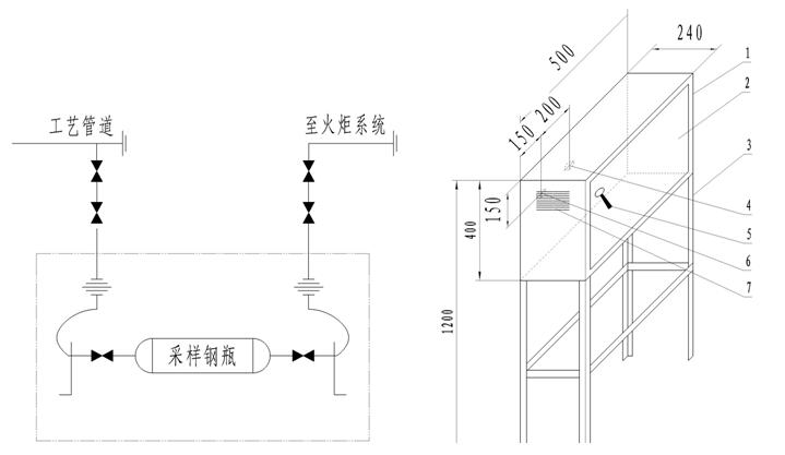 1、HQ-401型采樣器(采樣接管流程圖見圖1、安裝尺寸示意圖見圖2、編號說明見表2)