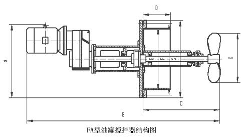 側(cè)向伸入式攪拌機(jī)是由儲(chǔ)罐的側(cè)壁伸入罐內(nèi),它通過法蘭蓋與罐體的開口法蘭相聯(lián)結(jié)。攪拌機(jī)的槳葉為船用螺旋槳型。由于螺旋槳的轉(zhuǎn)動(dòng),使罐內(nèi)液體產(chǎn)生兩個(gè)方向的運(yùn)動(dòng),一個(gè)沿著螺旋槳軸線方向向前運(yùn)動(dòng),另一個(gè)沿螺旋槳圓周方向的運(yùn)動(dòng)。軸線方向的運(yùn)動(dòng),由于受到罐壁的阻礙而使罐內(nèi)液體沿著罐壁作圓周方向的運(yùn)動(dòng),而液體沿螺旋槳圓周方向的運(yùn)動(dòng),就使罐內(nèi)液體上下翻動(dòng),這樣就使罐內(nèi)液體得到攪拌,并可防止罐內(nèi)沉積物的堆積。