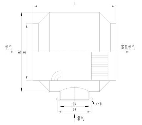 本產(chǎn)品由內(nèi)、外筒體,導(dǎo)流筒和混合單元組成(見下圖)。氧氣進(jìn)入兩筒體之間的空間后經(jīng)導(dǎo)流筒引入空氣流中實(shí)現(xiàn)初混,然后進(jìn)入混合單元,被多次切割分流,從管尾出來的已經(jīng)是均勻混合的富氧空氣。
